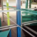 Text description provided by the architects. One among many standard stands at the book fair, a 3-by-3-metre footprint tasked with holding little more than shelves and a counter. the budget, predictably, was limited. within this almost generic brief, the project accepts its condition as an installation, but refuses its expected neutrality. it works instead with what is already there: leftover metal profiles of different sections, repainted in a deliberately fresh, almost excessive palette.